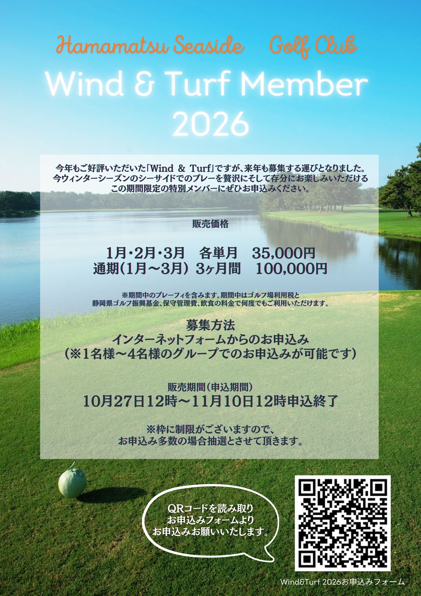 さて、Wind & Turf Member 2026として10月27日(月)12時から限定募集を致します。