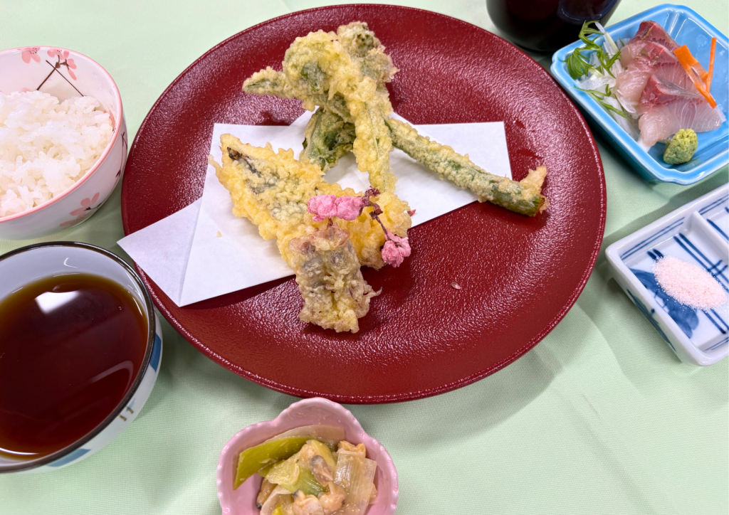 Cランチ 春の天婦羅御膳 御飯 味噌汁 刺身 小鉢 ¥2,800