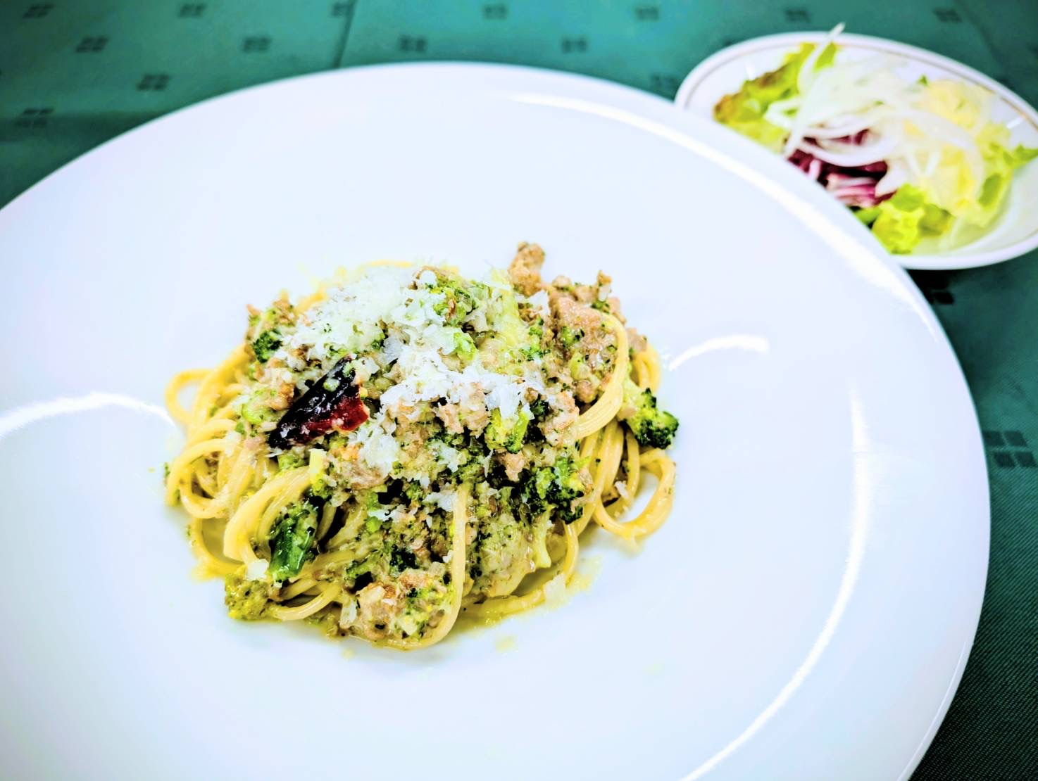 爽やかなハーブをまとわらせたサルシッチャをクリームソースに仕立てています。マッシュルームとブロッコリーがアクセントになっております。