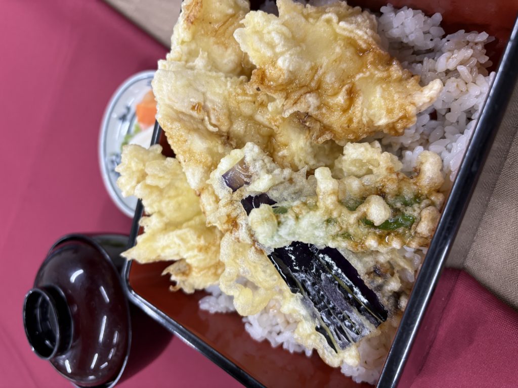 国産とり胸肉を使用し、ひと手間を掛け揚げ上がりにこだわっています。特製の天丼のたれでお召し上がり頂きます。