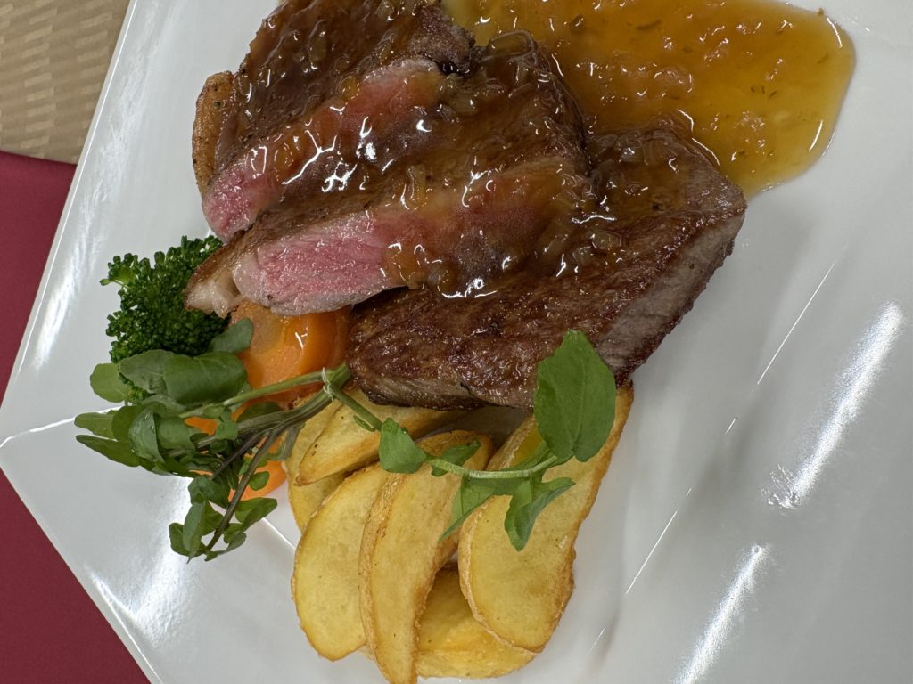 国産牛のランプを使用。焼き上がりをミディアムにする事により肉本来の旨味を引き立てます。