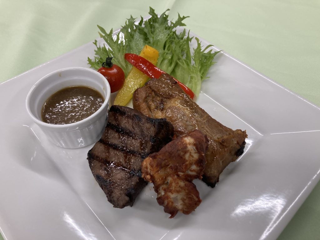 日替わりで御用意いたします3種類の肉のグリルをバーベキューソースでお召し上がり頂けます。